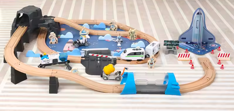 Comboio Elétrico - é autónomo, com efeitos de luz, e circula pela pista, trazendo a magia da exploração espacial para a vida das crianças.