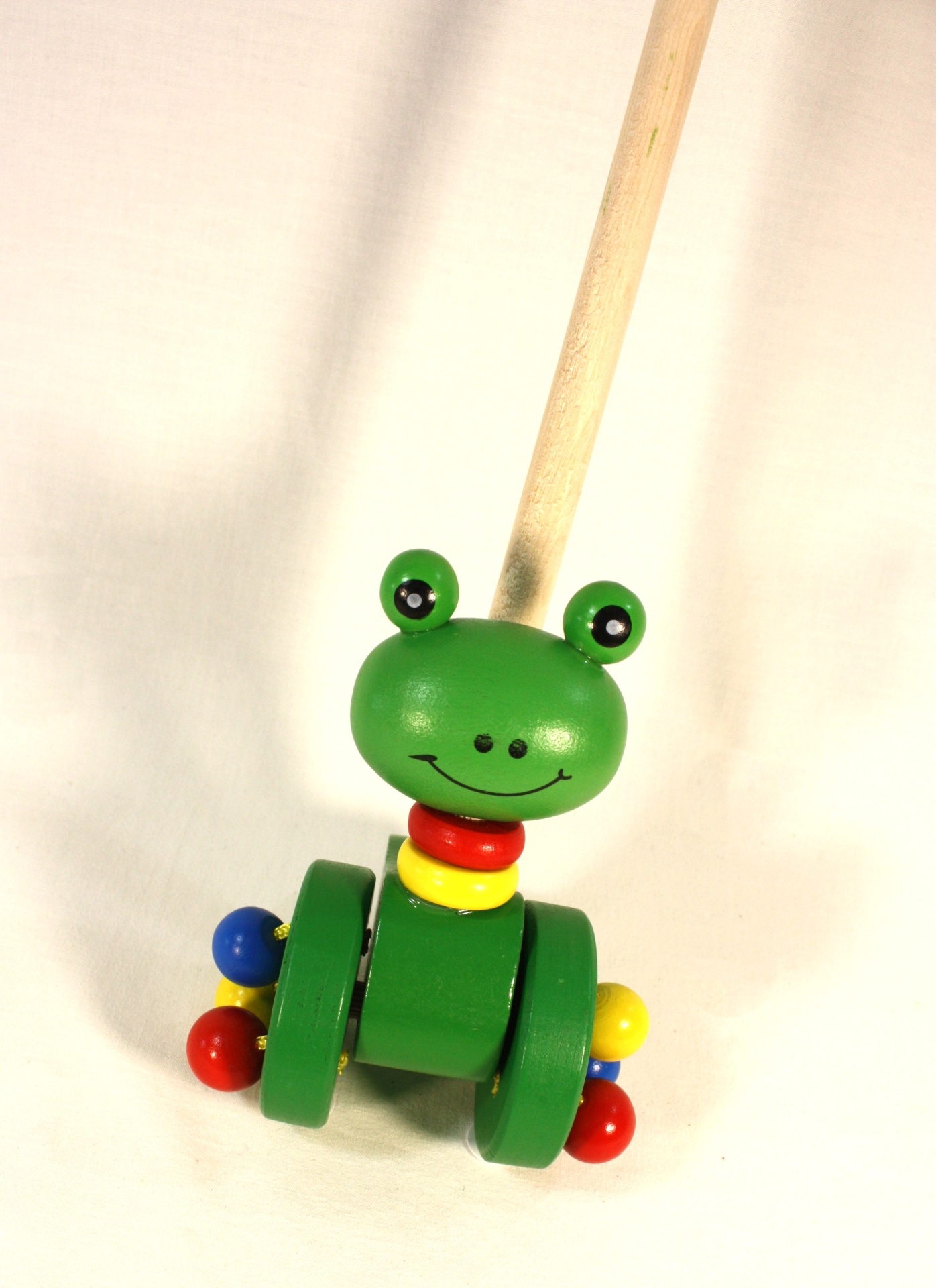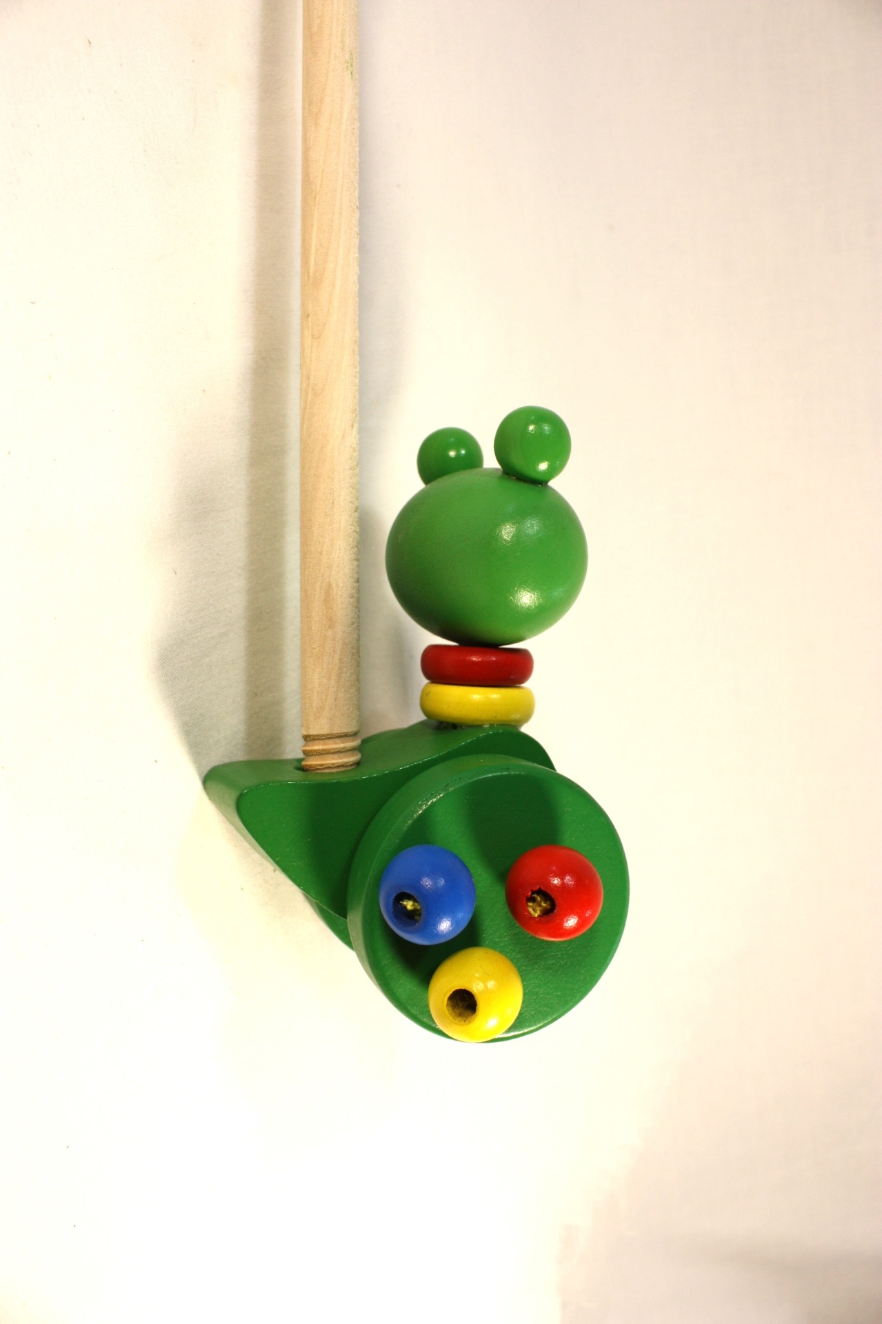 Consiste num carrinho de madeira com forma de sapo que pode ser facilmente arrastado por um cabo de madeira.