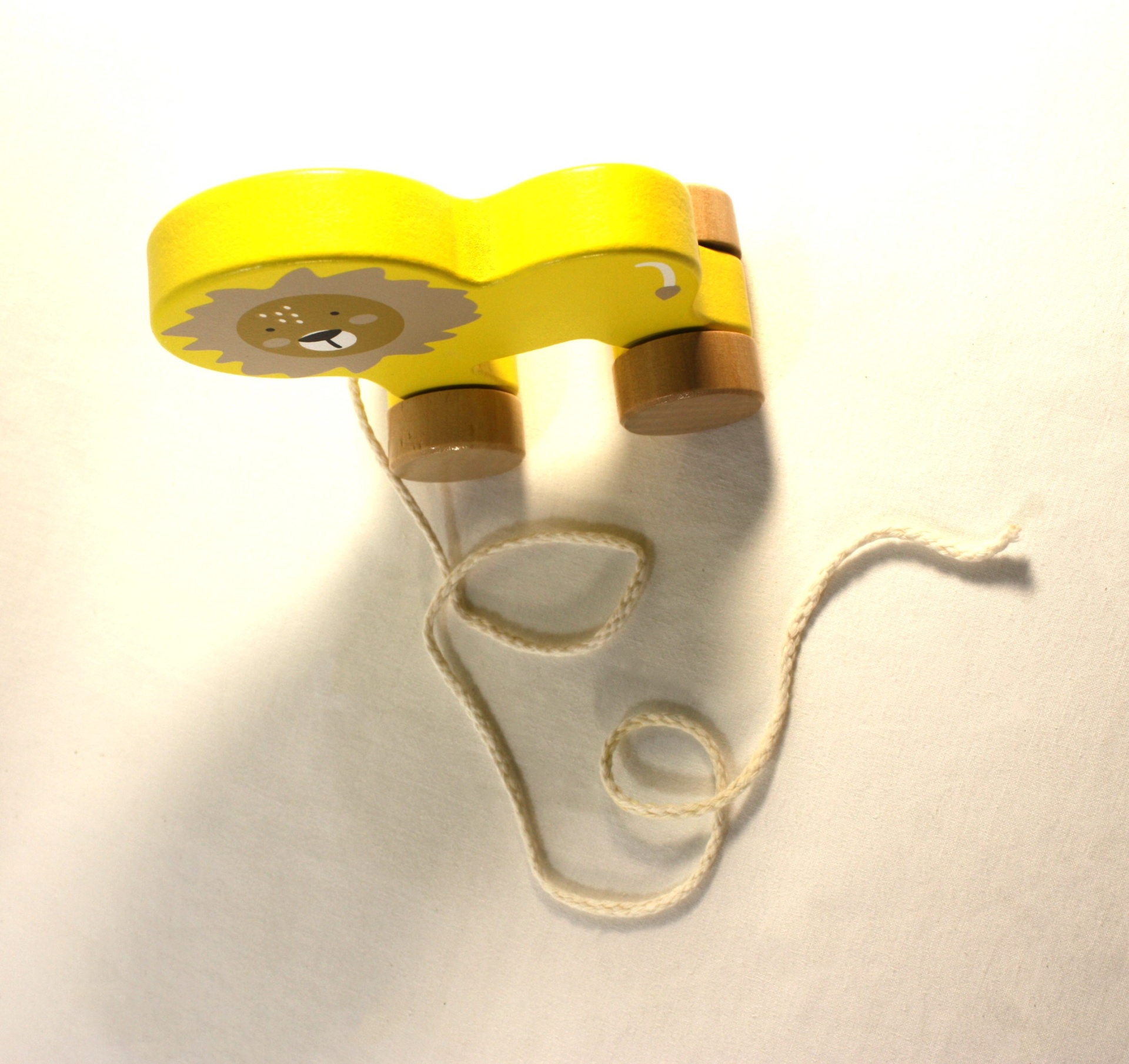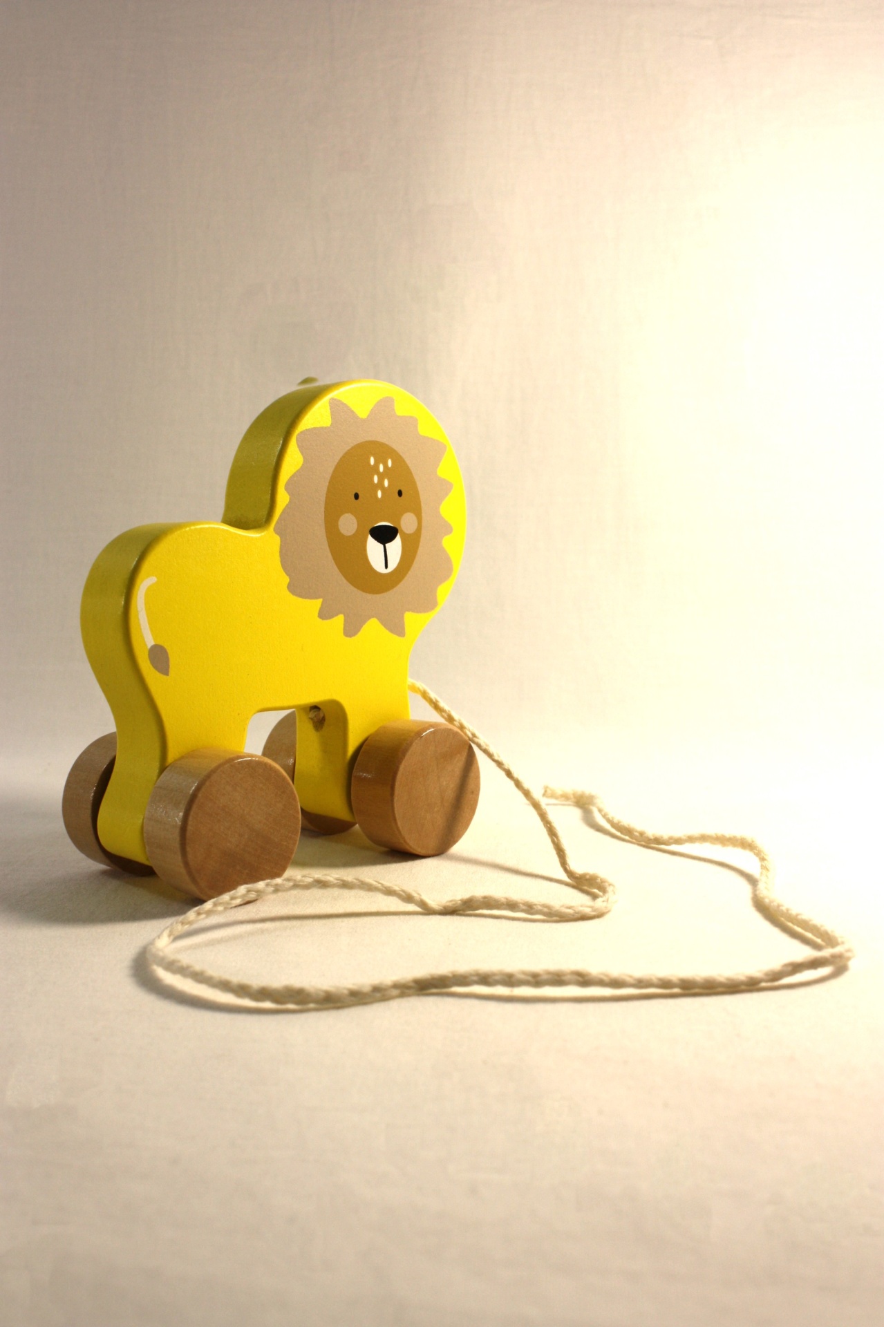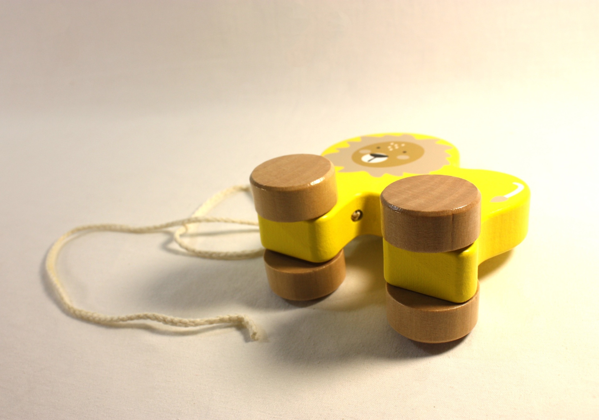 'Lenny, o Leãozinho' é um carrinho de madeira com o formato de leão e um fio para puxar.