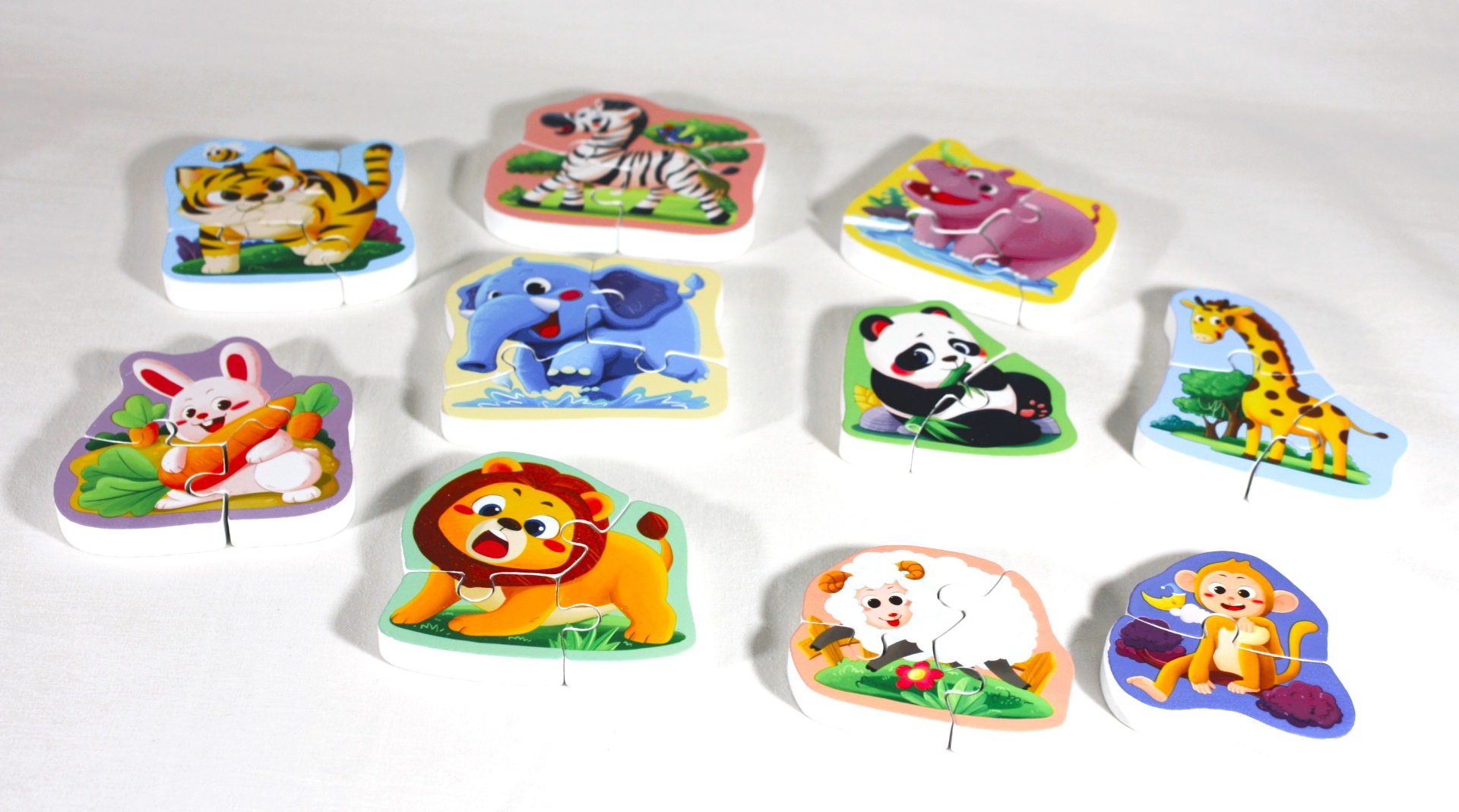 À medida que as crianças exploram as figuras dos puzzles vão também desenvolvendo a linguagem. Elas podem soletrar palavras, nomear figuras e criar histórias, enriquecendo o vocabulário e a capacidade de comunicação.