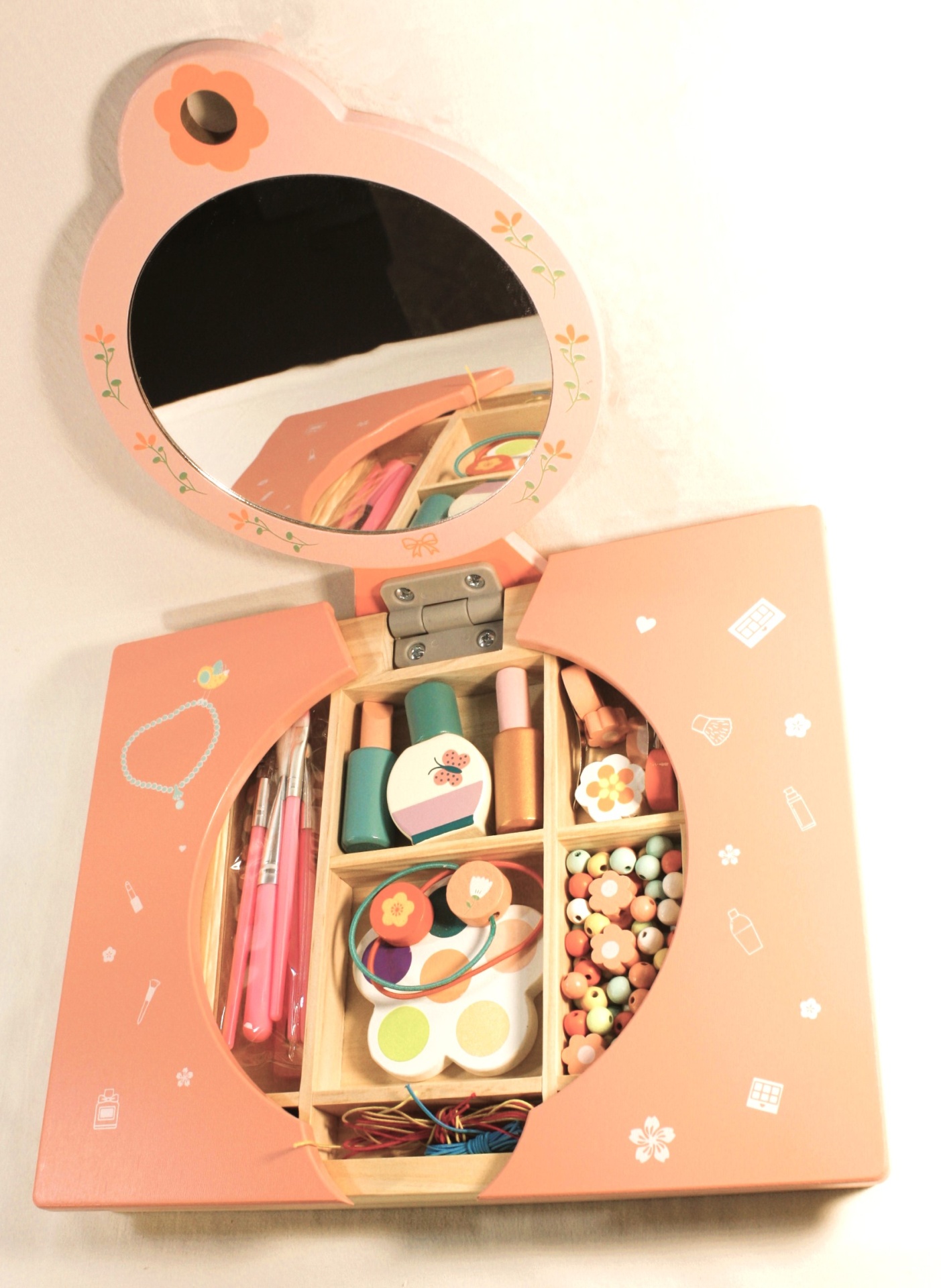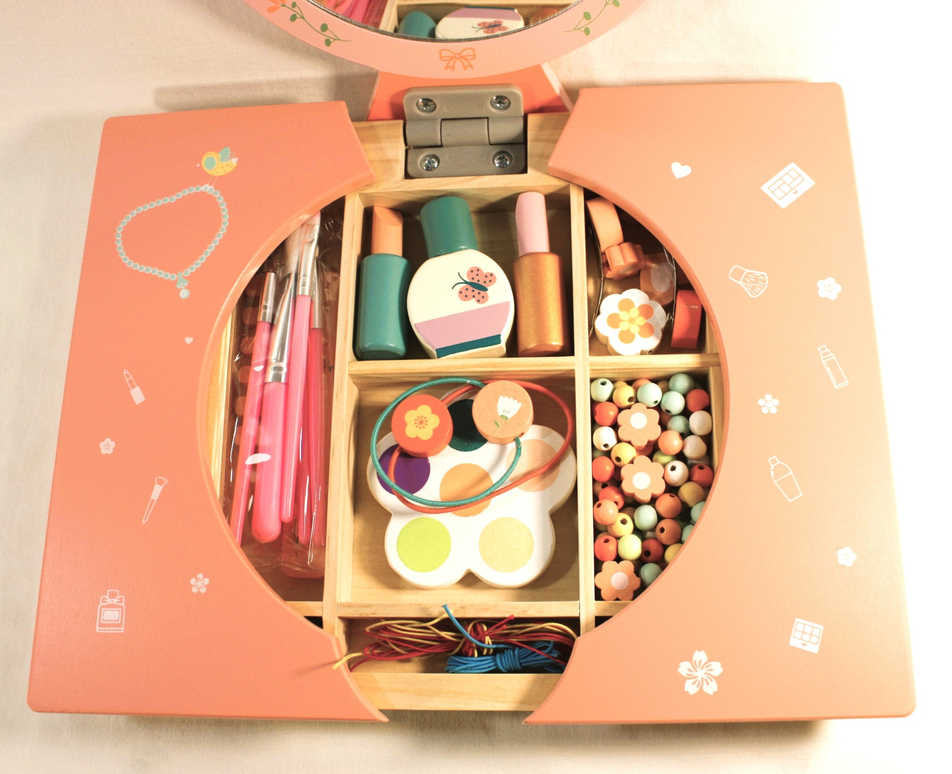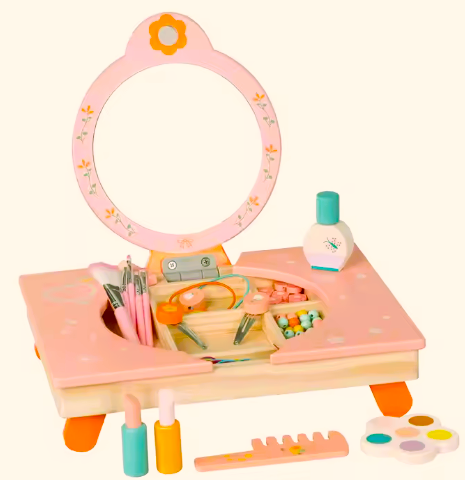 Esta mesa encantadora oferece às pequenas Beldades a oportunidade de se transformarem em verdadeiras estrelas à escala mundial. Equipada com acessórios de maquilhagem de madeira, esta mesa proporciona horas de diversão.