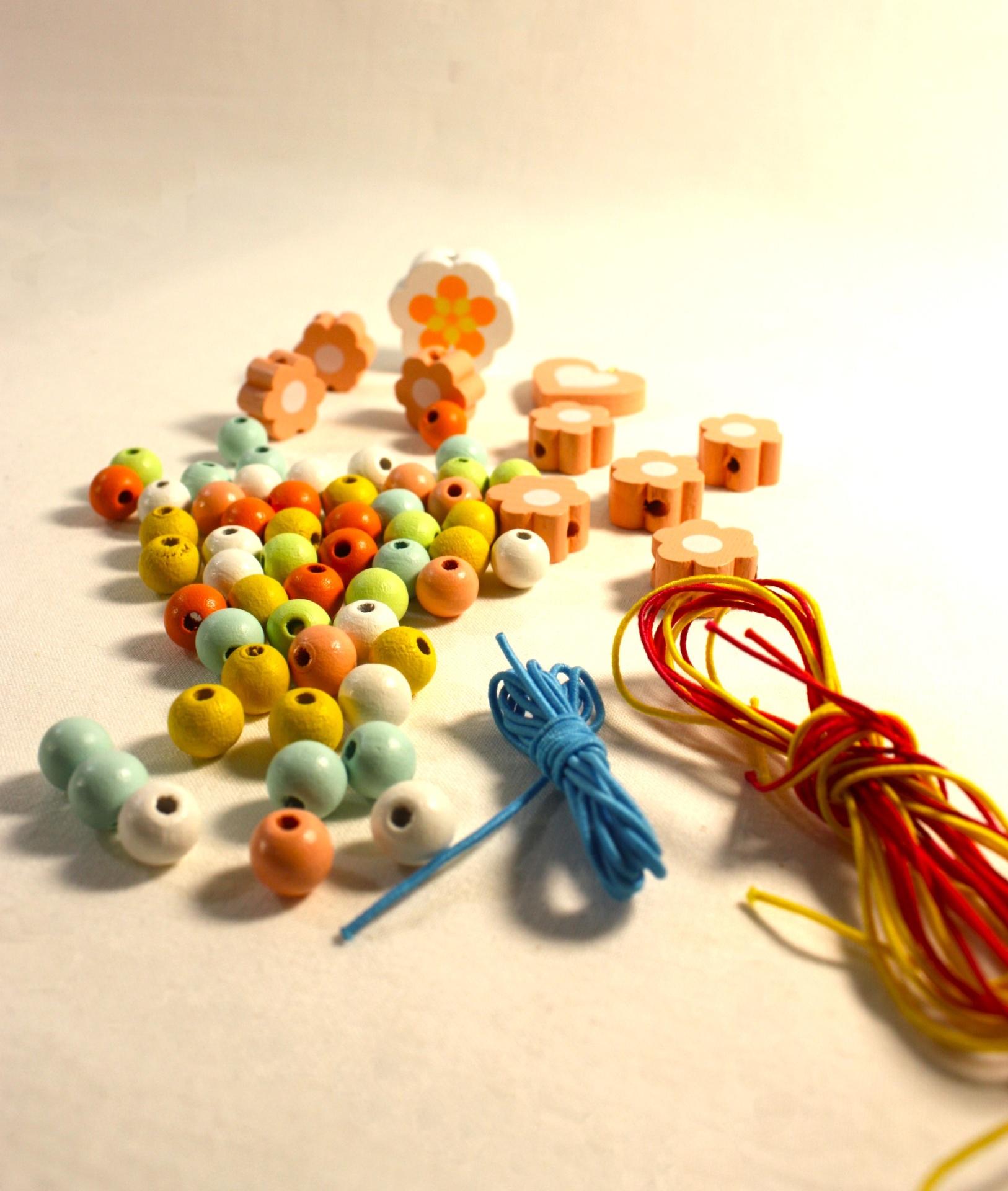 - missangas em madeira e fios para a criança criar as suas próprias pulseiras e colares