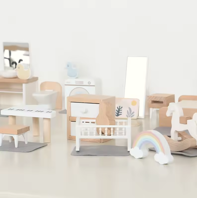 Na Gulla Baby temos um conjunto de mobílias em miniatura, projetadas para inspirar a imaginação e proporcionar horas de diversão criativa. São meticulosamente elaboradas, com utilização de madeira de florestas sustentáveis.