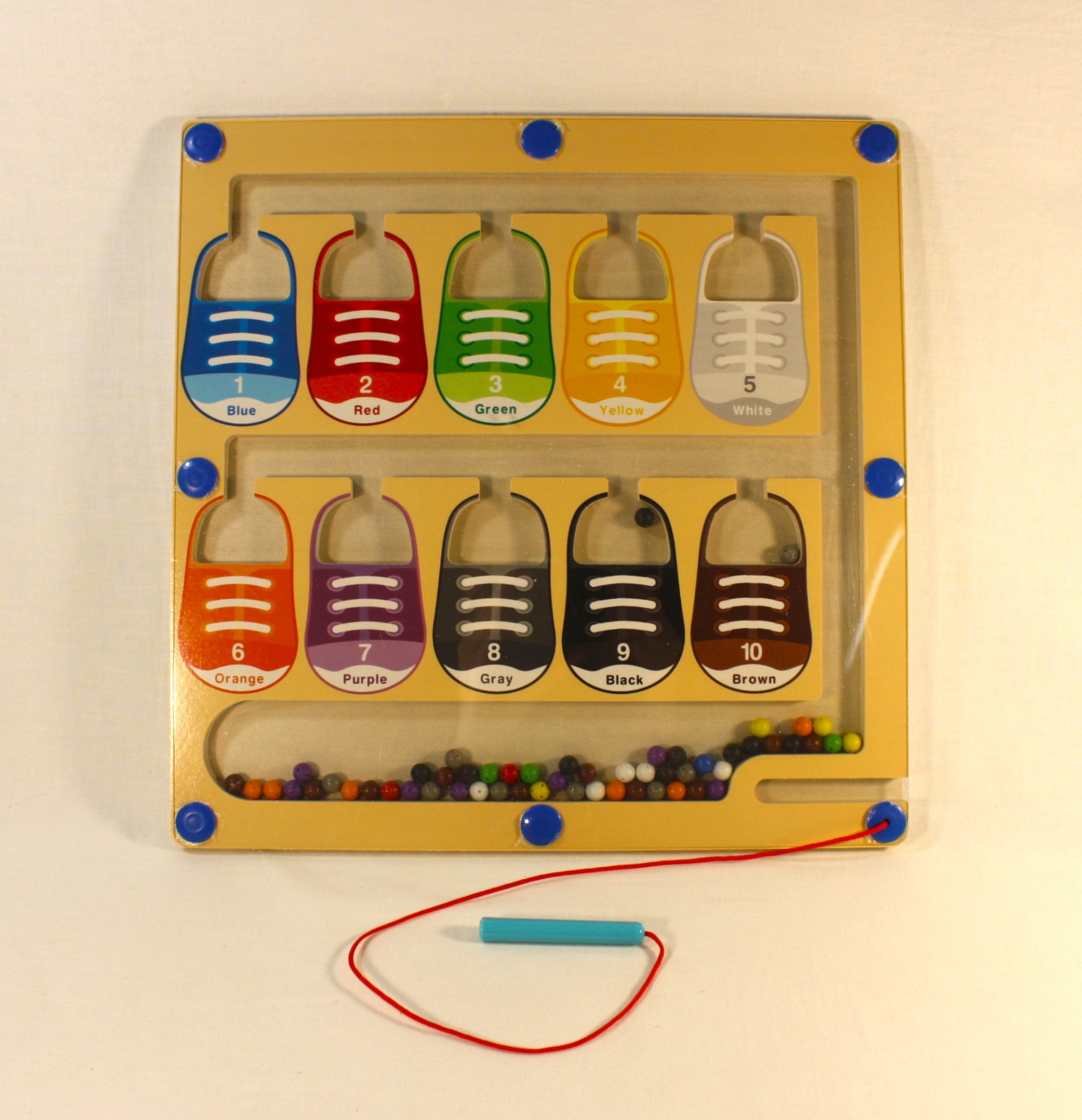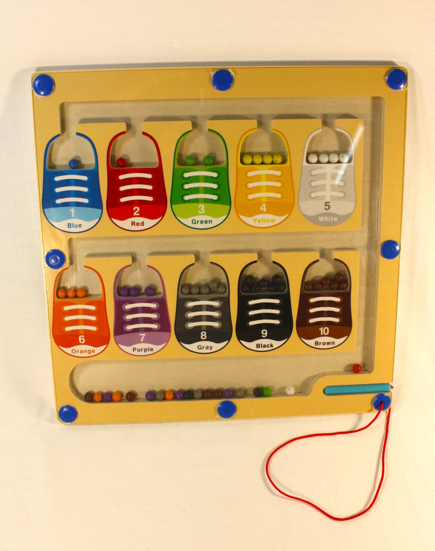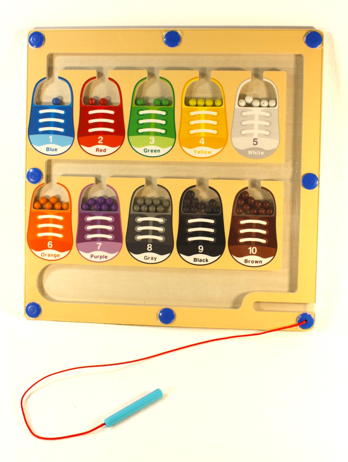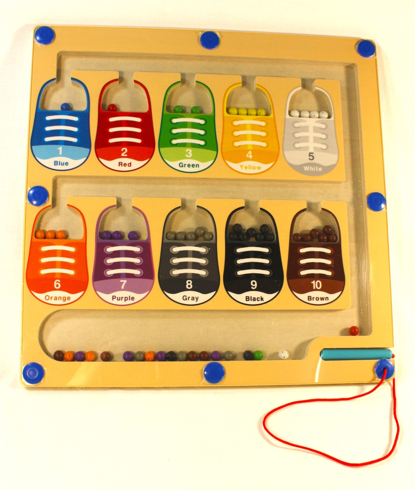 Que belo entretenimento! As crianças são desafiadas a guiarem bolas coloridas através de um labirinto magnético até sapatos da mesma cor e numerados. Com a caneta mágica, as crianças explorarão cores, números e habilidades motoras finas de maneira envolvente e lúdica.