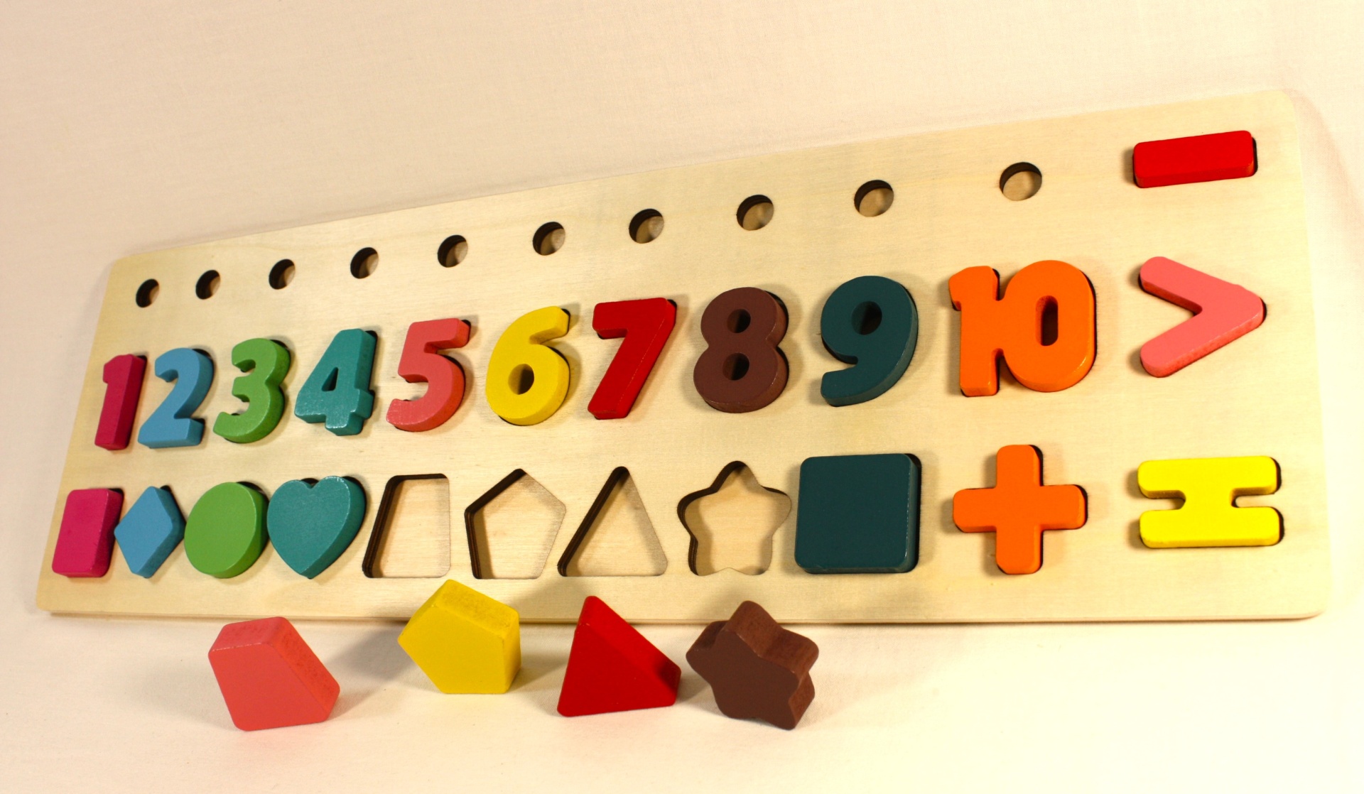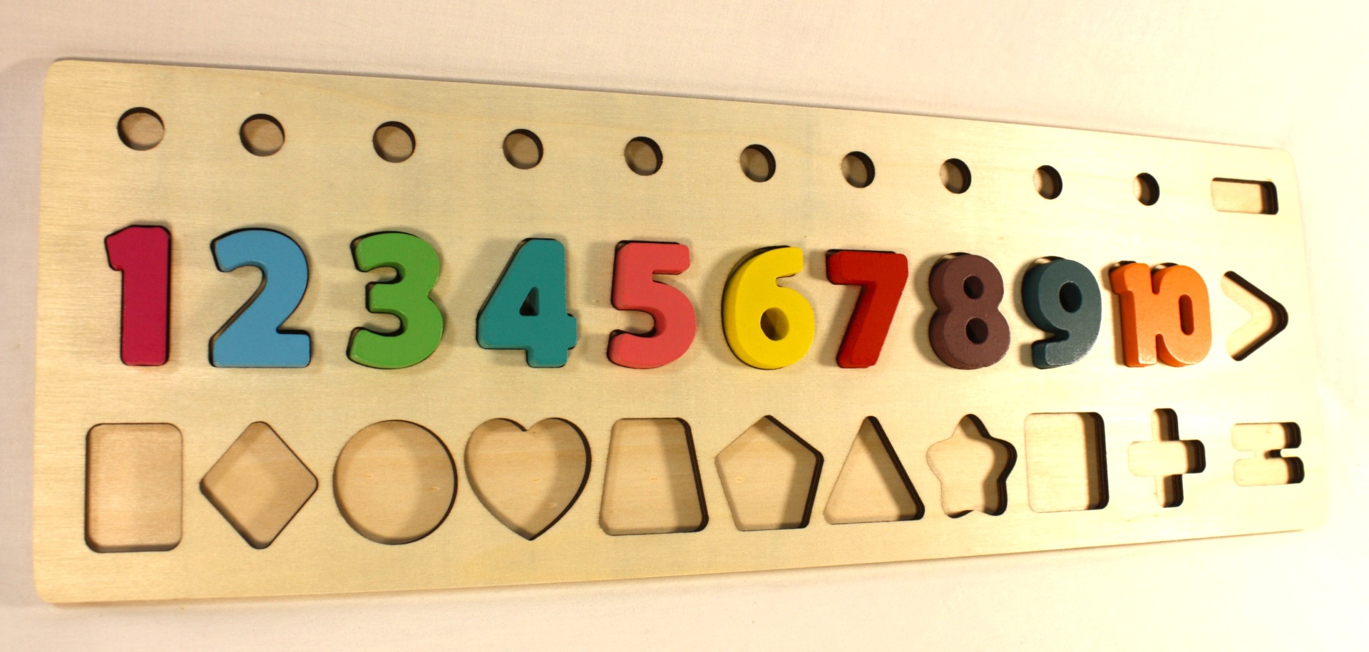 - Números e Cores - uma fila de encaixe que apresenta números de 1 a 10, cada um com uma cor distinta.